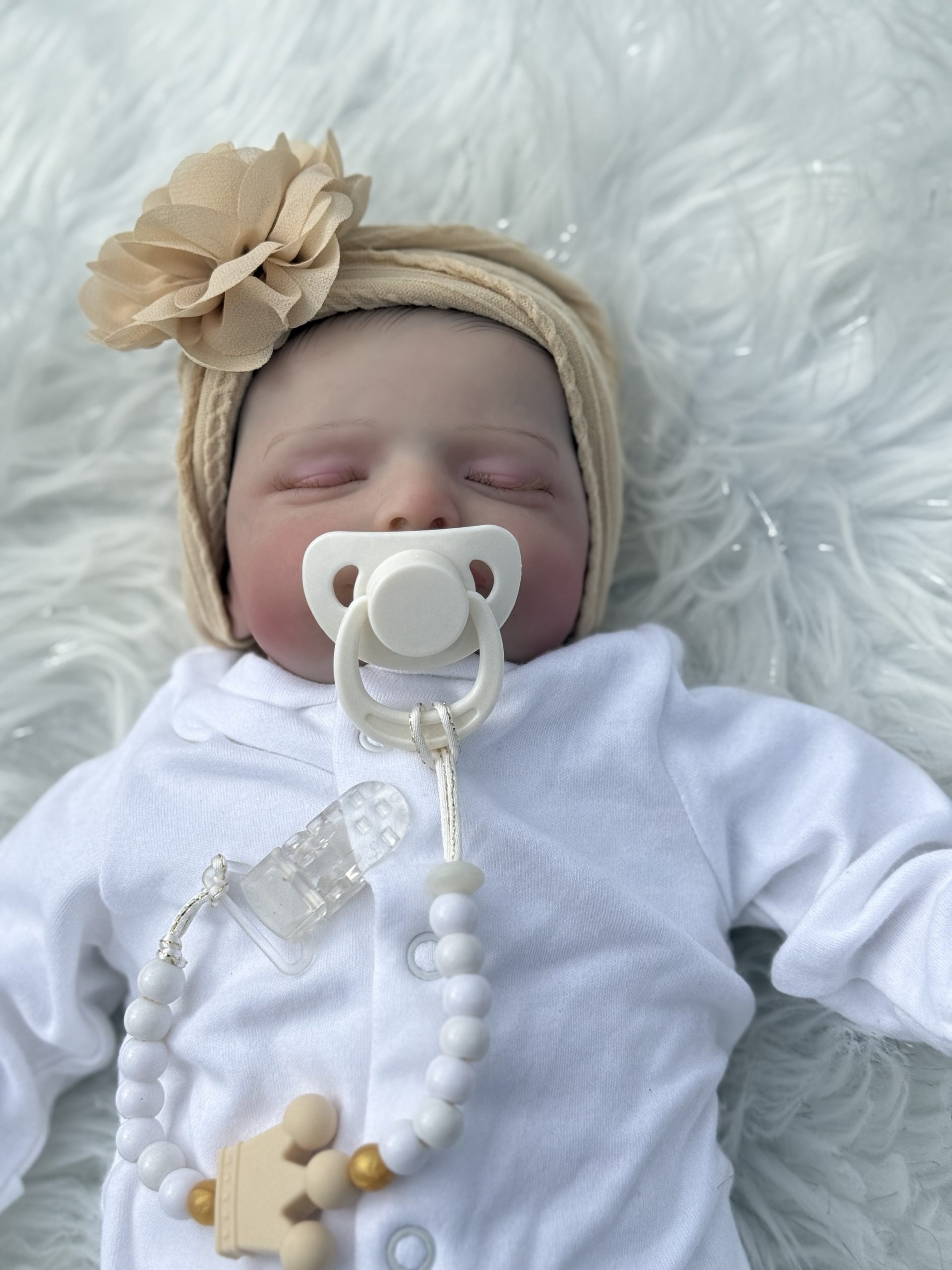 Wears tiny baby clothes
