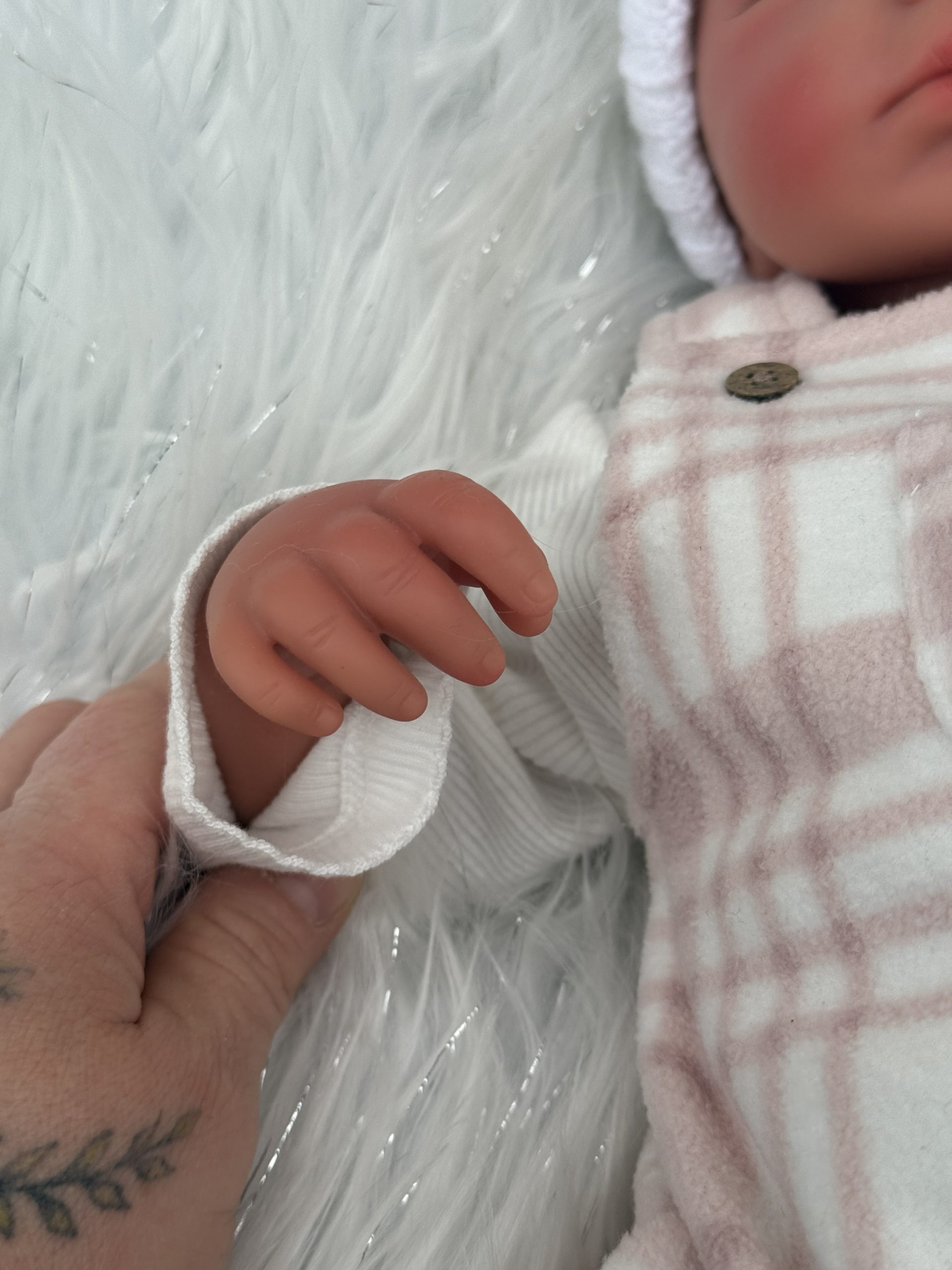 Wears tiny baby clothes