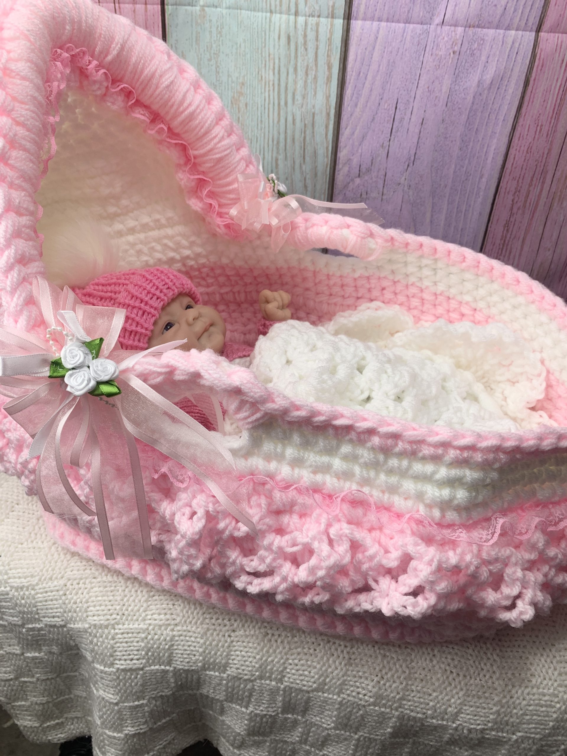 Baby precious also comes with the stunning handmade Moses basket… inside the Moses basket there is a pillow and a knitted blanket…
